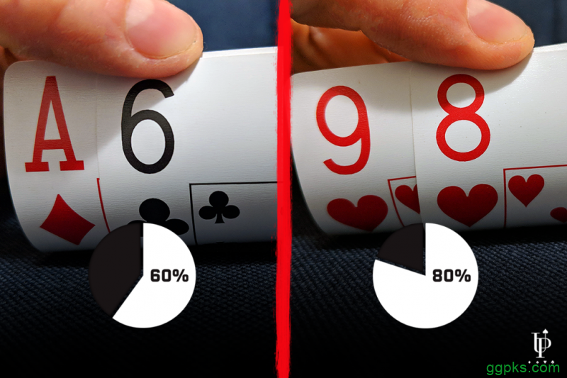 现在我们对比同花连子(suited connector)和隔点同花连子(suited gapper),看看连接性有多重要: