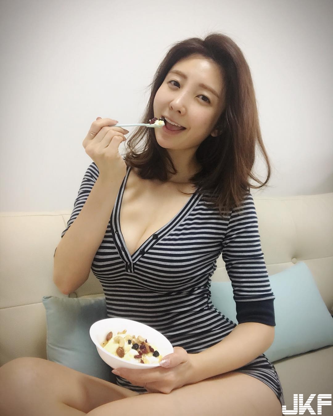 這名來自韓國的妹子叫做,조수아,是一名電視購物的主持人,一打開就可以看到妹子火辣的身材,出現在螢光幕上,我一定每天打開電視準時收看阿。妹子私底下的裝扮都超養眼der,大方秀出胸前「嫩白巨乳」,這程度根本就要擠爆電視螢幕啦,太兇狠啦~