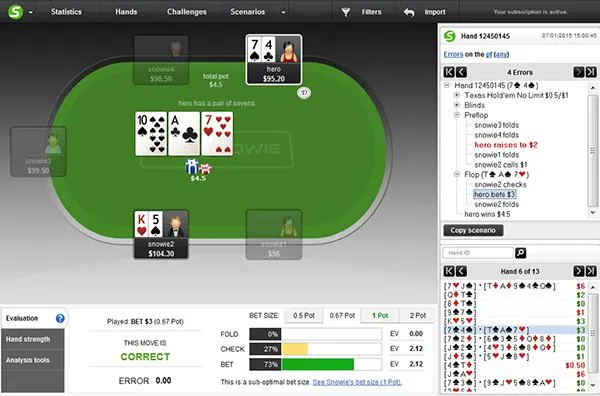 像PIOSolver、PokerSnowie、HoldemResources Calculator和ICMIZER这类扑克软件从面世以来就早早在圈内流行开来,除了被人诟病为牌桌上的“作弊帮凶”,它们其实可以是极有用的学习工具,能够帮我们找出各种情境中的最优打法。