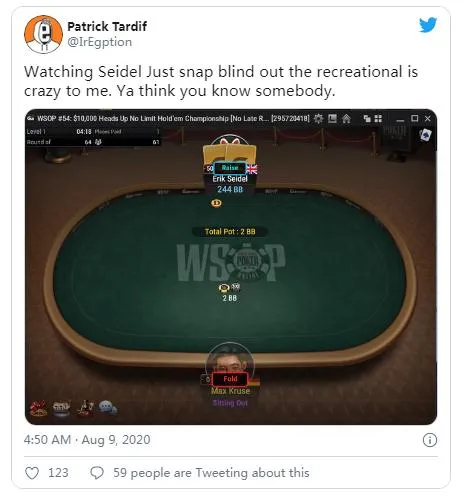 Erik Seidel在推特上受到了一些批评,因为他在一场WSOP线上单挑锦标赛中对一个未出现的对手进行了“洗劫”。